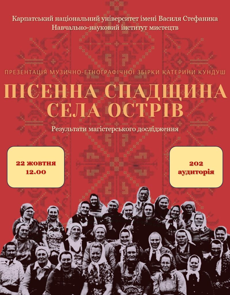 Запрошуємо на презентацію Кундуш Катерини, випускниці Львівської національної музичної академії імені М. В. Лисенка. Навчалася на кафедрах теорії музики та музичної фольклористики.