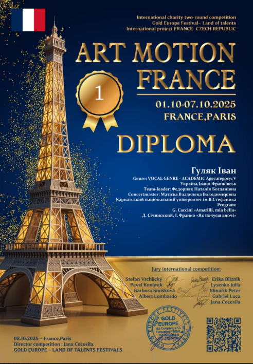 8 Міжнародний двотуровий конкурс мистецтв «Yula Art Fest. Підсумки року», , Чеська республіка (Брно)–Україна, 27 грудня 2023р.